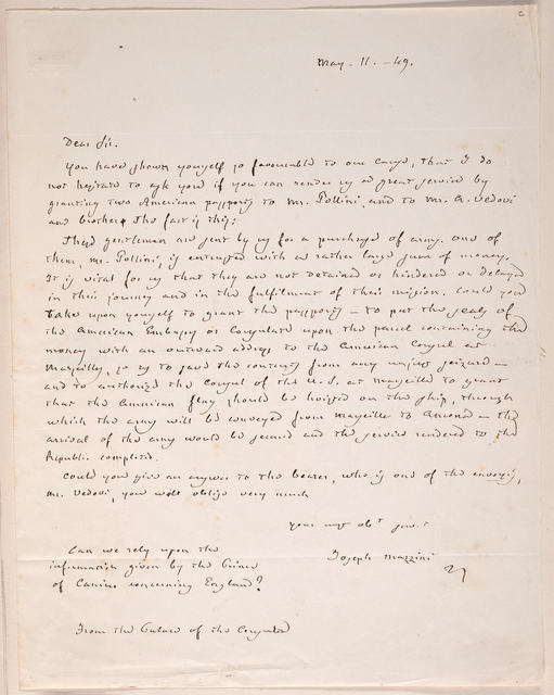 Mazzini, Giuseppe to Brown, Nicholas, on Passports