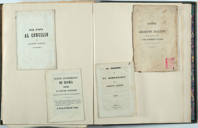 Pamphlets by Guiseppe Mazzini in Rush Hawkins’s Universal Republican Alliance Scrapbook, John Hay Library, Brown University.