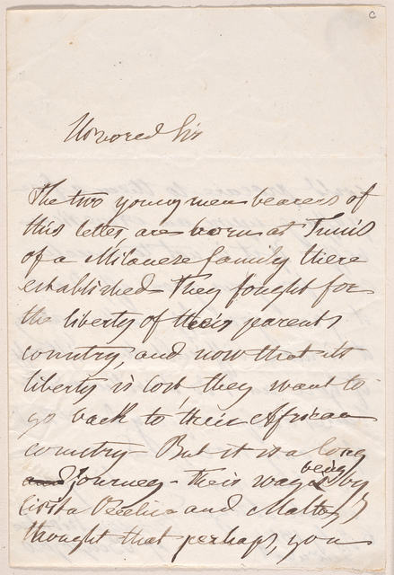 a request for free passage on an American ship for two brothers from an Italian family in Tunis who fought for the Roman Republic and now sought to return home