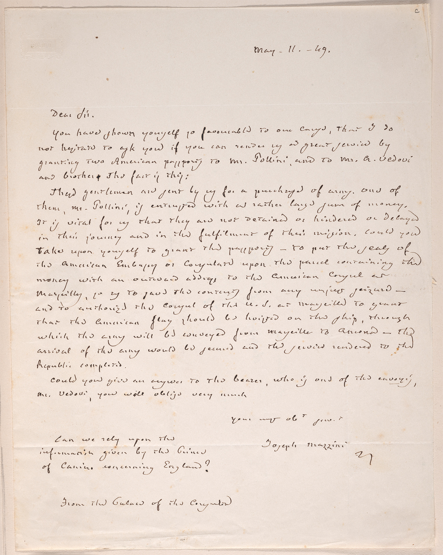 Uploaded UploadedMazzini, Giuseppe to Brown, Nicholas, on Passports